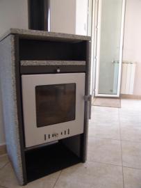 De bestaande open haard werd verwijderd en vervangen door een speksteen kachel. Dit voor zowel veiligheidsredenen alsook omdat het rendement van dergelijke kachel veel hoger is dan deze van een haard.